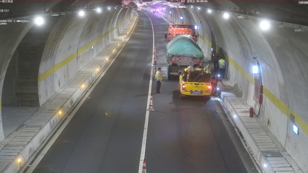 当日凌晨5时,一辆货车在峨汉高速大峡谷隧道K268+715处突发滞留。乐汉公司监控中心人员在视频巡查时发现车辆异常停车并冒烟,隧道火灾报警系统同步发出警报,报警点位与人工发现位置完全一致。