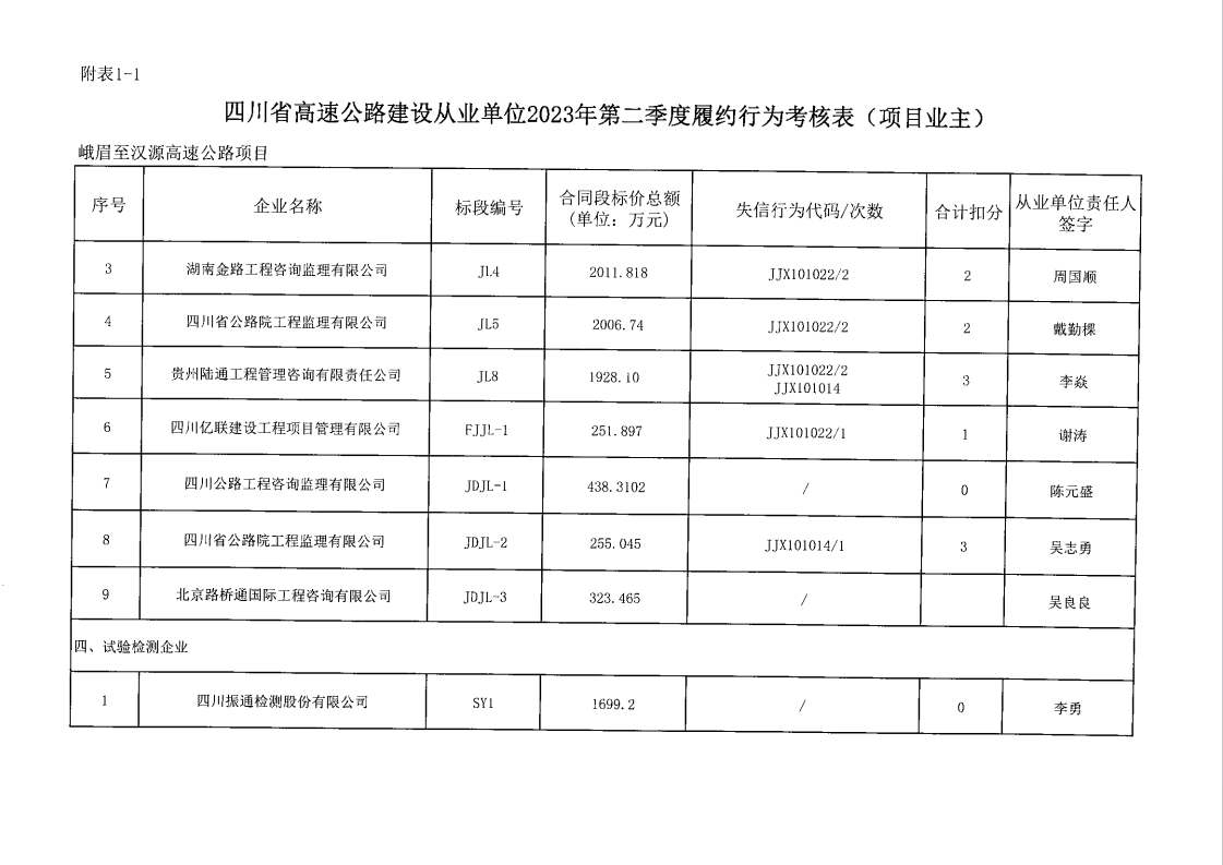2023年一、二季度履约行为考核表